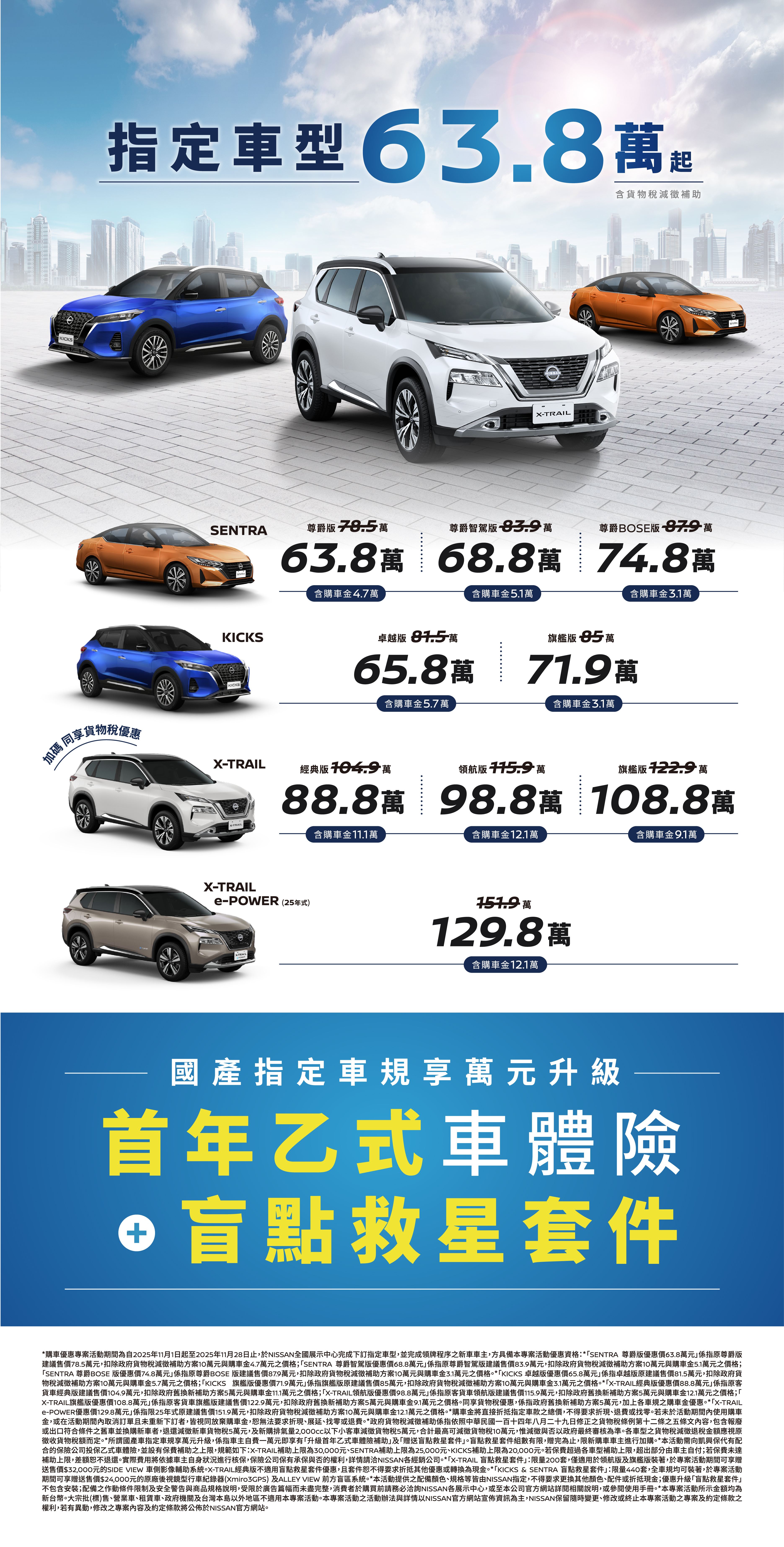 為向您提供更好的服務,NISSAN 官方網站會於網站使用本身或第三方的Cookie和其他追蹤技術,以作為分析、技術、行銷之用。
