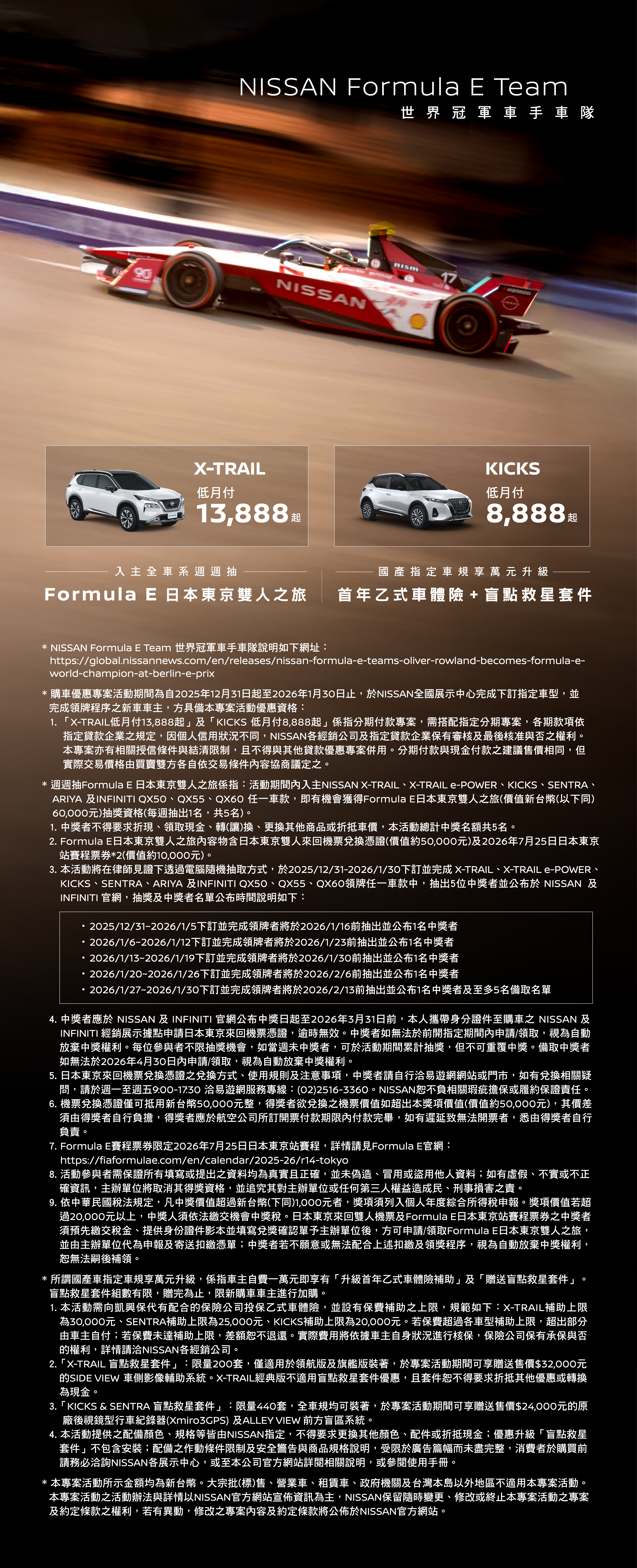 為向您提供更好的服務,NISSAN 官方網站會於網站使用本身或第三方的Cookie和其他追蹤技術,以作為分析、技術、行銷之用。