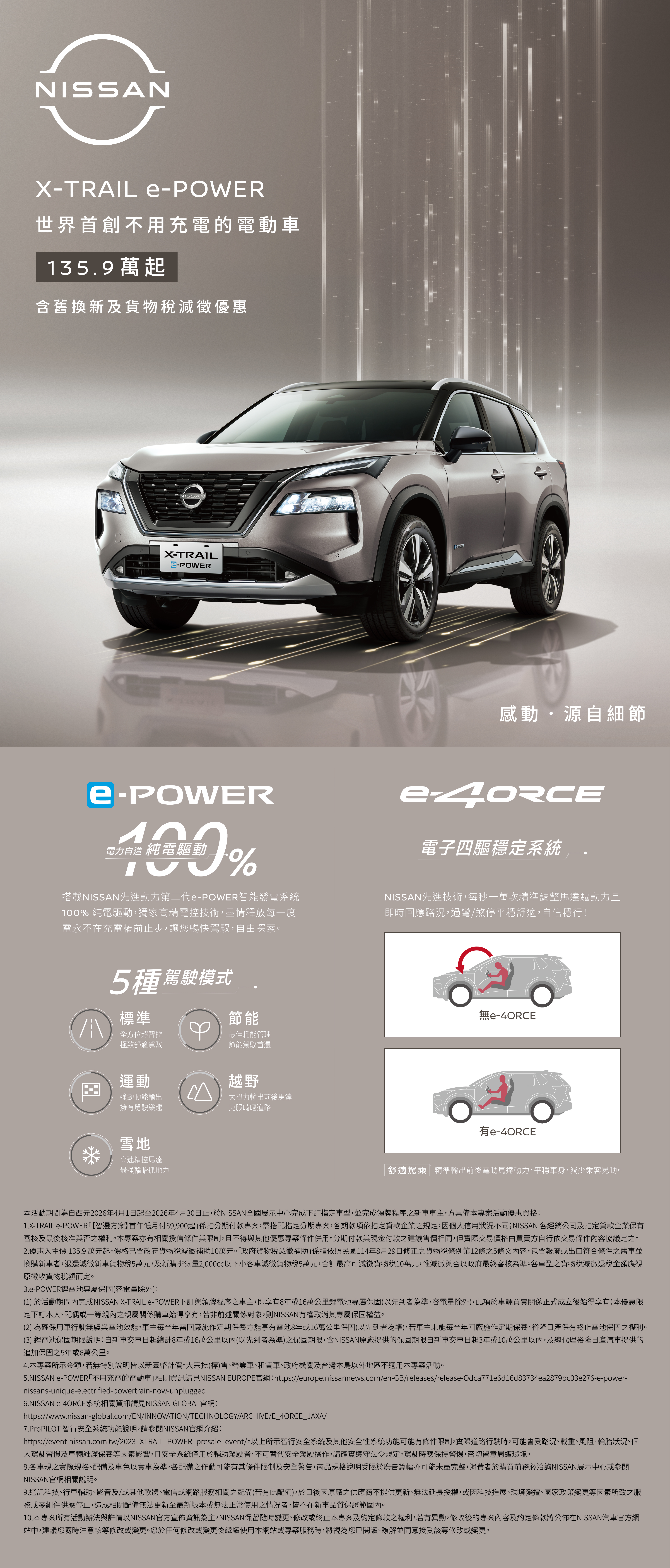 為向您提供更好的服務,NISSAN 官方網站會於網站使用本身或第三方的Cookie和其他追蹤技術,以作為分析、技術、行銷之用。