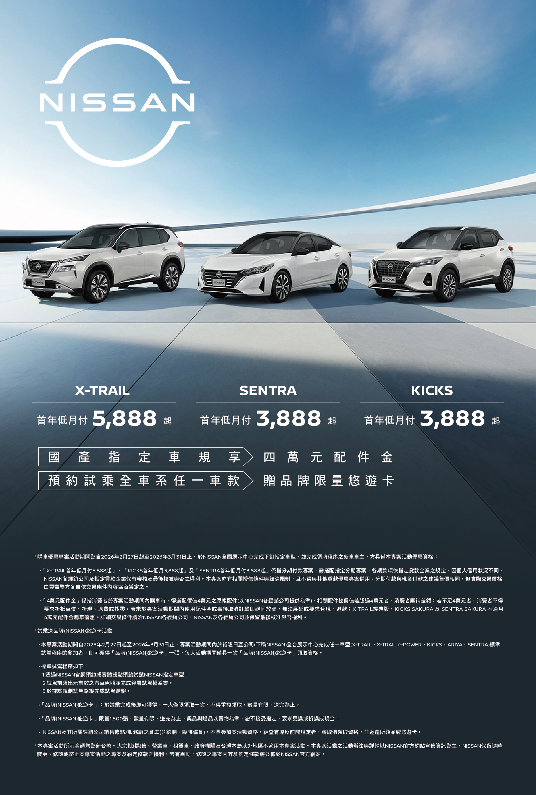 為向您提供更好的服務,NISSAN 官方網站會於網站使用本身或第三方的Cookie和其他追蹤技術,以作為分析、技術、行銷之用。